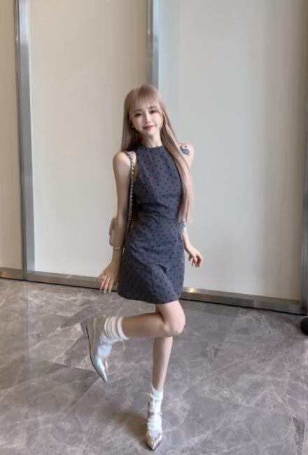 春夏新作 女 レディース ハイウエスト 袖なし ミニ ワンピース ドレス 台型スカート