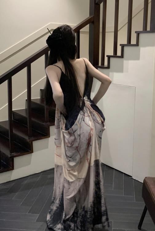 2024春夏新作 女 レディース ハイウエスト 袖なし 吊りスカート ロング ワンピース 台型スカート