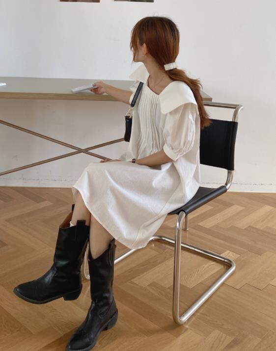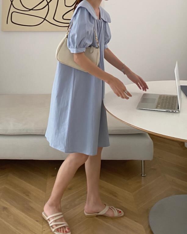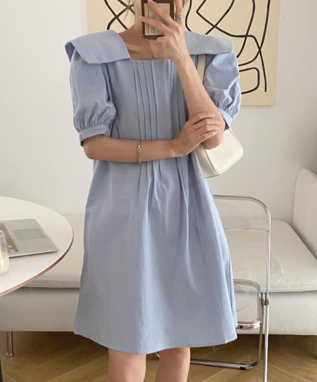 春夏新作 女 レディース ハイウエスト 半袖 無地 ミニ ワンピース ドレス 台型スカート