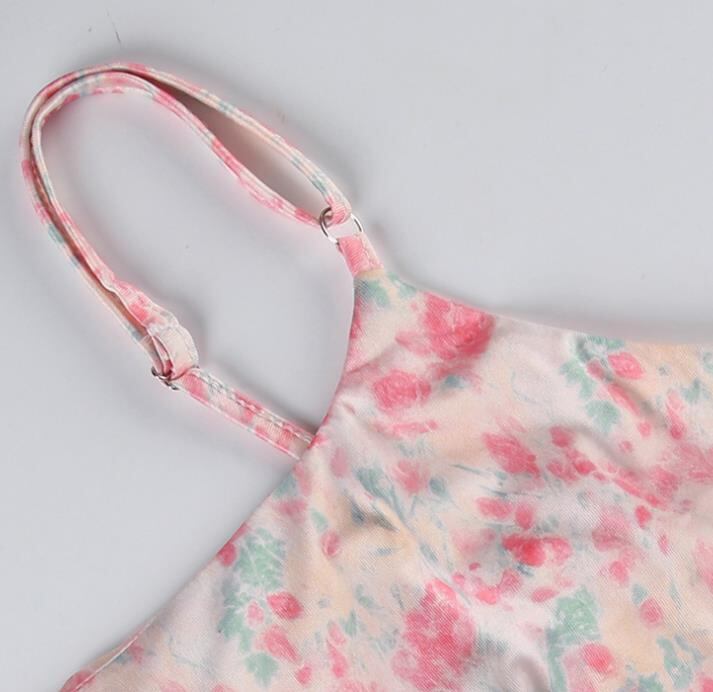 春夏新作 女 レディース 袖なし 花柄 吊りスカート ミニ ワンピース ドレス 台型スカート