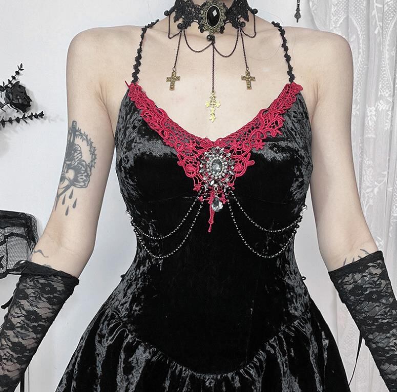 春夏新作 女 レディース 袖なし ベロア 吊りスカート ミニ ワンピース ドレス 台型スカート