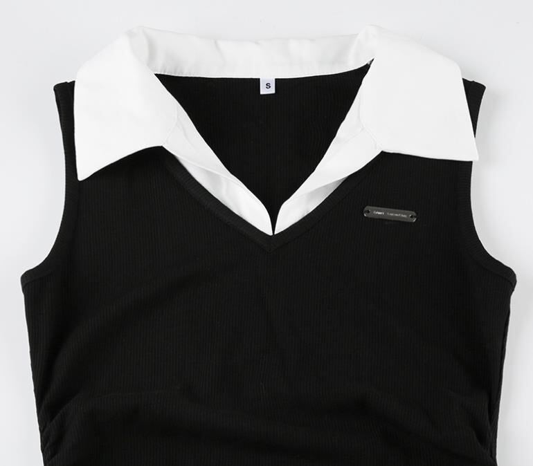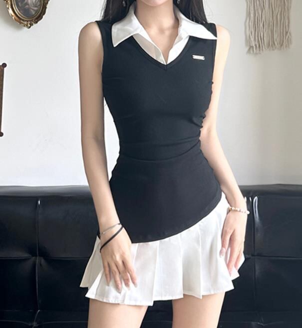 春夏新作 女 レディース ハイウエスト 袖なし ミニ ワンピース ドレス プリーツスカート