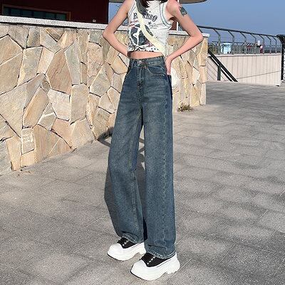 デニムボトムス ワイドパンツ デニムパンツモップパンツ レディース 夏 デザイン感 ハイウェスト 着痩せ ストレートパンツ