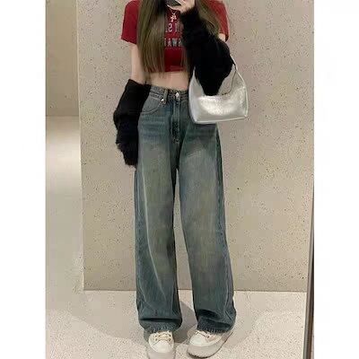 レトロ ワイドパンツ レディース ジーンズ ニューデザイン ゆったり ハイウェスト 着痩せ ストレートパンツ モップパンツ