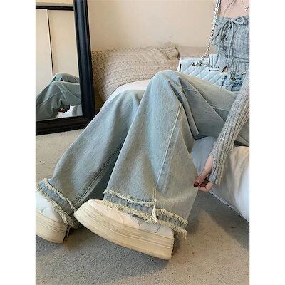 【2枚購入で2oo円OFF】デニムパンツ 秋 ロングパンツ 韓国ファッション ゆったり パンツ レディース ハイウエスト着痩せ デニム ワイドパンツ体型カバー ひんやりボトムス