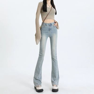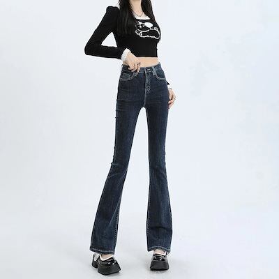 人気 新作 韓国 スラックスパンツ 美脚 マイクロラッパ デニムパンツ おしゃれ パンツ レディース ワイドレッグ 見えやせ ゆったり 垂れ感