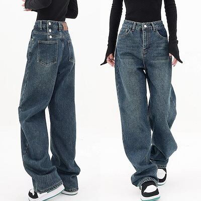 出荷が早い2025レトロハイウエストワイドデニムブルーストレートゆったりカジュアルモップパンツレディースデニム