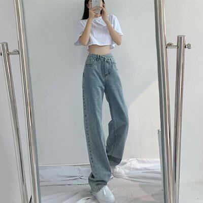 2025新作 カジュアル レディースジーンズ ロングパンツ ロングデニム ハイウエスト デニムボトムス ワイドパンツ 脚長効果!スキニーパンツひんやりボト デニムパンツ