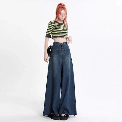 デニムパンツ2024新作 おしゃれ 流行り ハイウエスト ワイドパンツ ジーンズ レディース レトロ ゆったり ズボン スラックスパンツ デニム スキニーパンツひんや