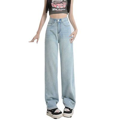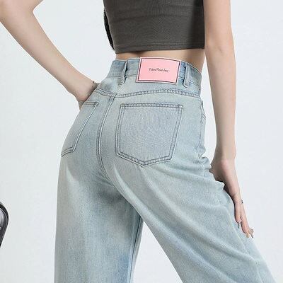 ワイドパンツ 2024春夏 新作 ライトブルー ジーンズ ワイドパンツ 百掛け ストレート 韓国