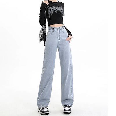 ワイドパンツ 2024春夏 新作 ライトブルー ジーンズ ストレート 着痩せ ワイドパンツ 百掛け