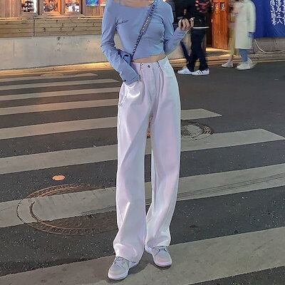 韓国ファッション 夏 ワイドパンツ デニム 脚長効果 ズボン レディース ロングズボン モップパンツ 2025新作 デニムボトムス デニムパンツ ひんやりボトムス 2025福袋