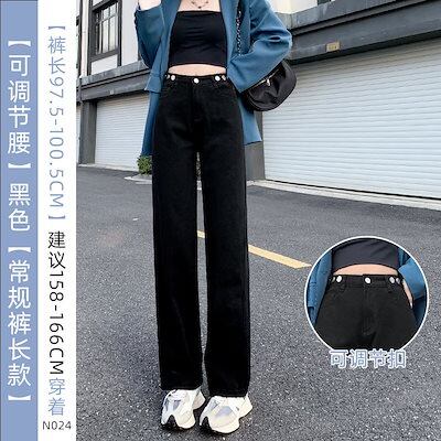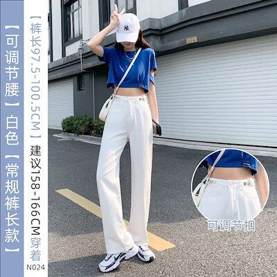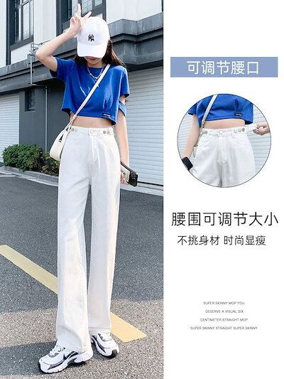 ジレンズ脚長効果! ジーパンレディース ストレートジーンズ ハイウエスト ゆとりがある ワイドパンツ ラッパズボン 調整可能 スキニージーンズ ジーパン