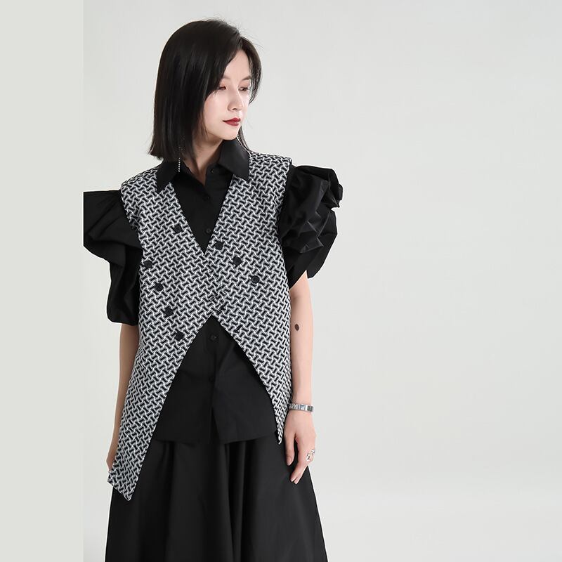 初回送料無料ノースリーブカーディガンベストジャケットチェック柄トップス人気商品