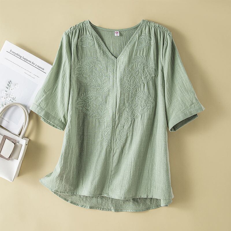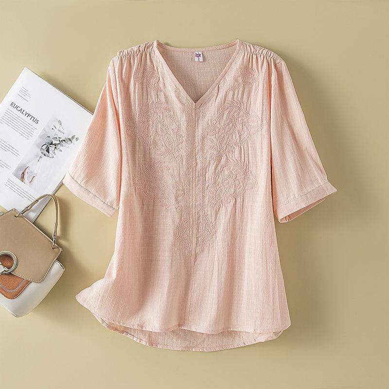 初回送料無料ゆったりとしたVネックトップTシャツスリミング刺?トップス