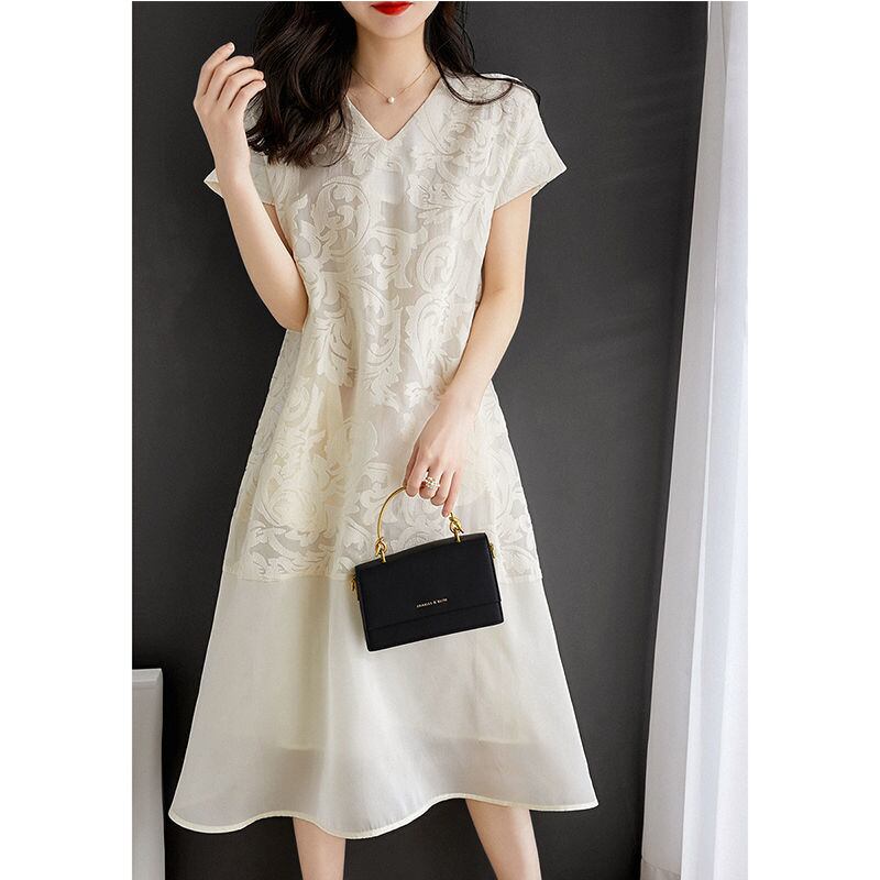 初回送料無料夏新作ドレスVネックワンピース トップス 高級感スカート