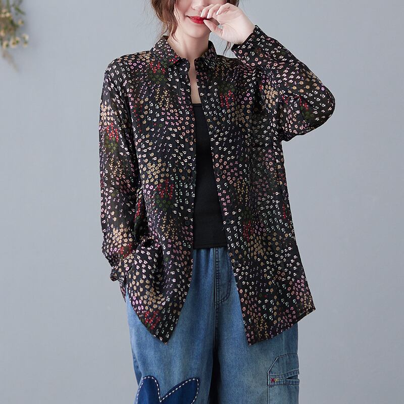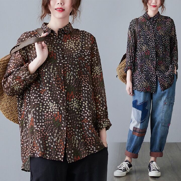 初回送料無料ゆったりサイズフローラルシャツコットンリネンシャツ長袖トップス人気商品