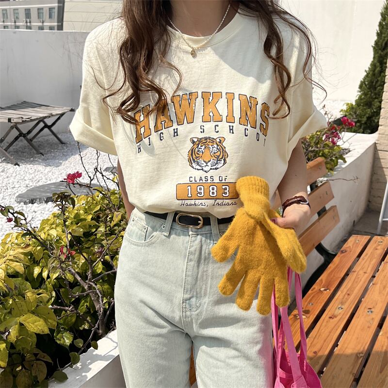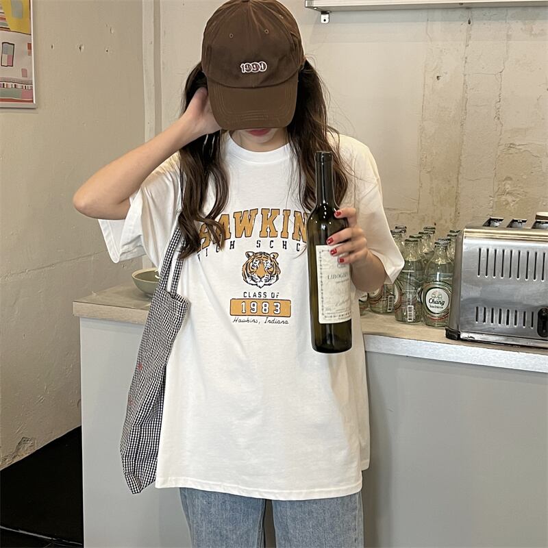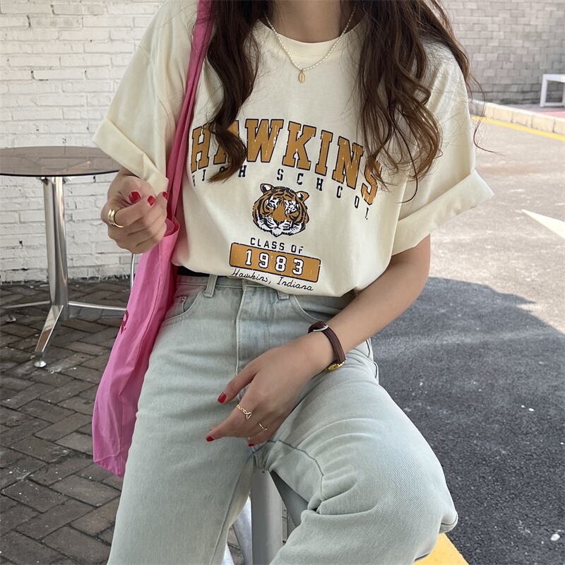 初回送料無料トッププリントクルーネックレターレディースファション服トップス
