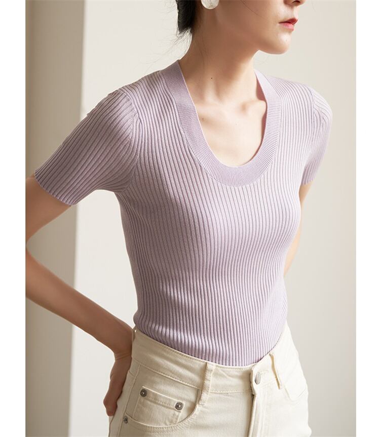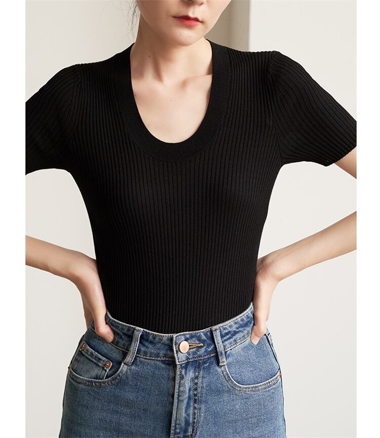 タイムセール限定価格 修身上着 通勤 快適である Uネック 涼感 半袖上着 ニットトップス 怠惰な風