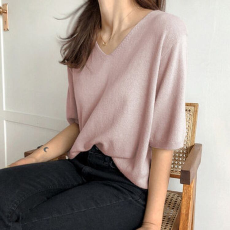 初回送料無料新しいVネックゆったりTシャツ半袖ニットトップスレディース人気商品おしゃれ