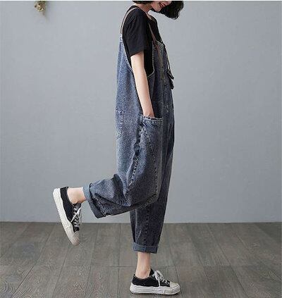 デニムサロペット サロペット デニム 大きいサイズ ワイド パンツ レディース オーバーオール オールインワン サスペンダー キャンプ カジュアル ロング 体型カバー ゆったり 楽ちん 大人 デニムワ