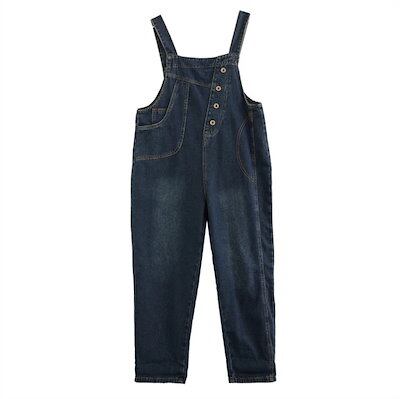 前後2Way デニムサロペット レディース コーデ 秋 サロペット デニム 大きいサイズ ワイド パンツ オーバーオール ロング 体型カバー ゆったり 楽ちん 大人 デニムワイドパンツ 春 夏 秋 無