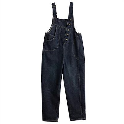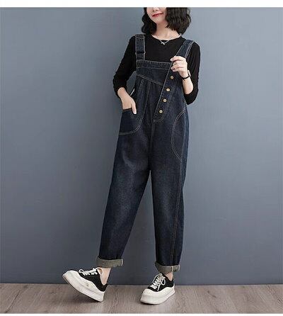 オールインワン デニムサロペット レディース コーデ 秋 サロペット デニム 大きいサイズ サルエルパンツ アシンメトリー 体型カバー ゆったり 楽ちん 大人 デニムワイドパンツ 春 夏 秋 無地