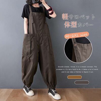 サロペット オールインワン レディース パンツ ワイドパンツ ガウチョパンツ ガウチョ オーバーオール カジュアル 大きいサイズ 体型カバー サルエルパンツ ボトムス ゆったり 無地 30代 40代