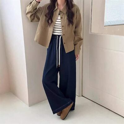 デニム パンツ レディース 秋 冬 オールシーズン ワイドパンツ ロング丈 ウエストゴム 無地 ジーンズ ボトムス ゆったり ストレートパンツ コットン 楽ちん デニムパンツ 体型カバー 大きいサイズ