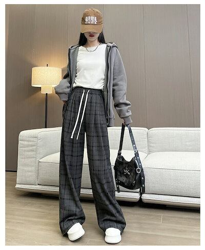 パンツ チェック パンツ レディース 秋冬 ワイドパンツ ガウチョパンツ チェック柄 ワイド ガウチョ 大きいサイズ ロングパンツ ストレートパンツ ボトムス ウエストゴム ポケット付き きれいめ カ