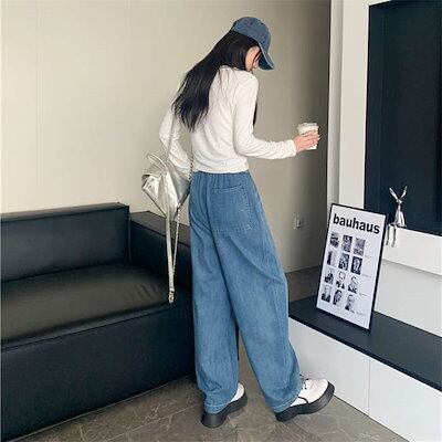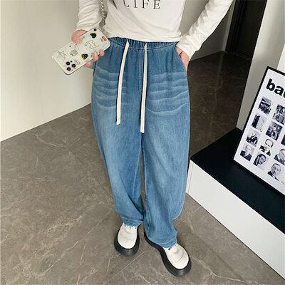 デニムパンツ レディース 大きいサイズ ダメージデニム ダメージ ジーンズ ボトムス ワイド ダメージジーンズ ゆったり ハイウエスト ダメージパンツ ワイドパンツ デニム ウエストゴム ロングタイプ