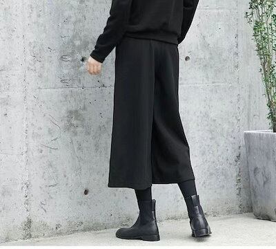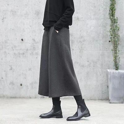ワイドパンツ パンツ レディース 秋冬 9分丈 微起毛 スカーチョガウチョパンツ ウール調 ゆったり ウエストゴム フォーマル 大きいサイズ イージーパンツ ひざ下 ポケット ロングパンツ 美脚 落ち