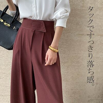 タックパンツ パンツ ワイド レディース タック ワイドパンツ ロング ロングパンツ ボトムス ボトム ストレート ズボン ハイウエスト タック マジックテープ 美脚 大きいサイズ 体型カバー 30代