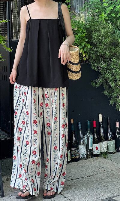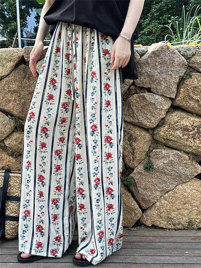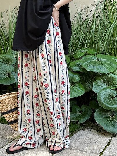 花柄パンツ レディース ワイド ワイドパンツ 夏 涼しい ひんやり ガウチョパンツ イージーパンツ 花柄 総柄 大きいサイズ ゆったり ゆる ボトムス 春夏 ロングパンツ マキシパンツ マキシ丈 体型