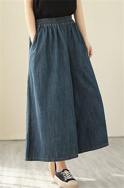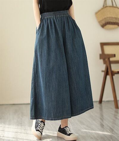 デニム フレアパンツ 七分丈 デニムパンツ 薄手 夏 ワイドパンツ レディース デニム ガウチョパンツ デニムワイドパンツ 夏 秋 春 大きいサイズ ゆったり ボトムス 春夏 イージーパンツ 体型カバ
