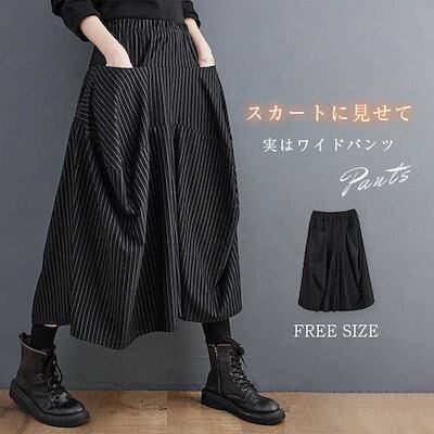 ワイドパンツ レディース 大きいサイズ 秋冬 きれいめ スカート 個性的 ゆったり ストラップ ワイド パンツ 秋 冬 カジュアル ガウチョパンツ スカート ウエストゴム 美脚パンツ ボトムス 着痩せ