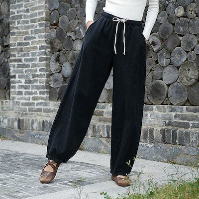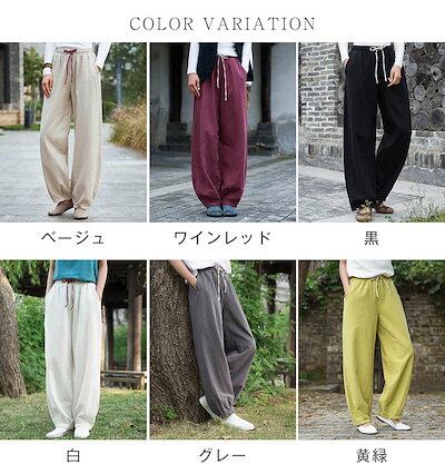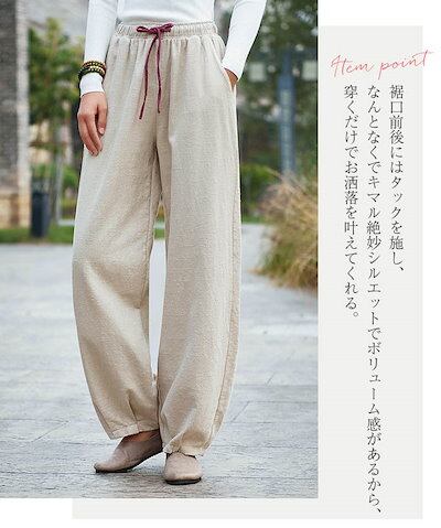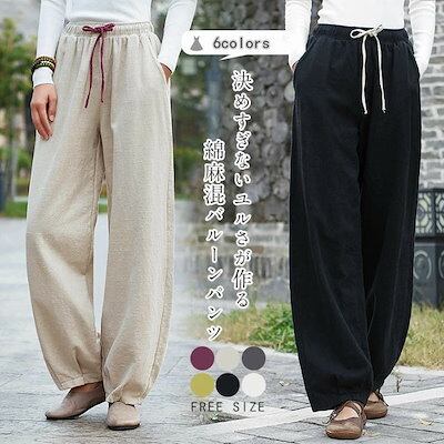 バルーンパンツ レディース ワイドパンツ 秋 春 大きいサイズ ゆったり ボトムス 綿麻混 コットンリネン コクーンパンツ サーカスパンツ 体型カバー ウエストゴム 無地 リラックス 着痩せ 美脚 通