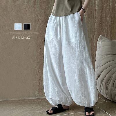 ワイドパンツ レディース 綿麻風 きれいめ ガウチョパンツ 無地 春 秋 レディース カジュアル ギャザーパンツ 大きいサイズ ゆったり ボトムス 体型カバー ウエストゴム リラックス 着痩せ 美脚