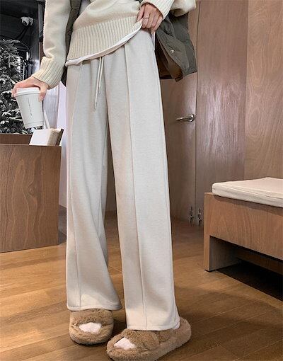 ワイドパンツ レディース ボトムス ズボン ロング ロングパンツ ロング丈 ツイードパンツ 大きいサイズ ゆったり 冬 普通丈 長め丈 ツイード ヘリンボーン ウエストゴム リボン付き 厚手 あったか