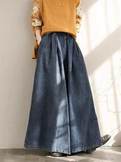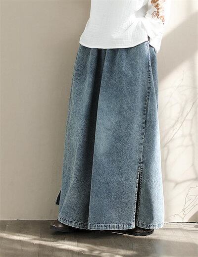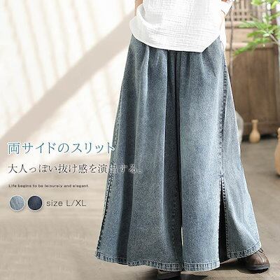 ワイドパンツ デニムパンツ ガウチョパンツ パンツ レディース 春 夏 秋 サイドスリット ガウチョ ワイドパンツ ロング丈 パンツ デニムワイドパンツ ゆったり 体型カバー 大きいサイズ ボトムス