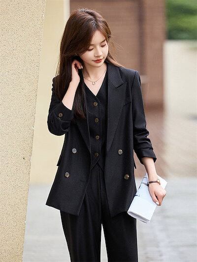スーツ レディース セットアップ 洗える パンツスーツ Vネック 長袖 ロング丈 ビジネス リクルート オールシーズン 春 夏 秋 冬 大きいサイズ 上品 入学式 ジャケット ワイドパンツ 2点セット