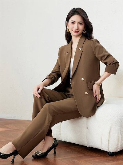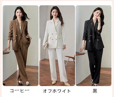 スーツ レディース セットアップ Vネック 洗える 2点セット パンツスーツ 長袖 ロング丈 ビジネス リクルート オールシーズン 春 夏 秋 冬 大きいサイズ 上品 入学式 ジャケット ワイドパンツ