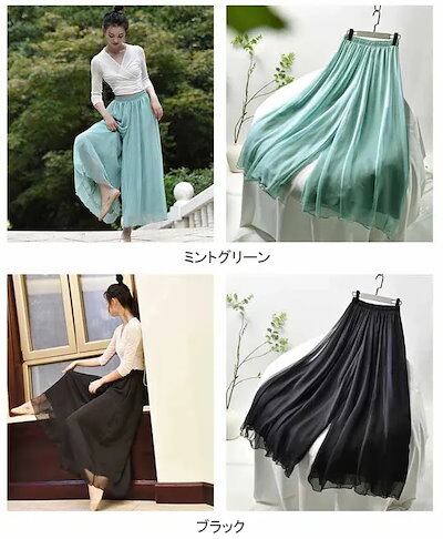 24新作 ガウチョパンツ ワイドパンツ 無地 レディース フレアパンツ ガウチョ スカンツ スカーチョ ロングパンツ ズボン パンツ ロング丈 ロング シフォンパンツ ウエストゴム 大きい