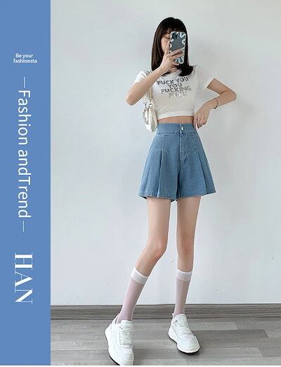 ひんやりボトムス ジーンズレディースデザイナーハイウエスト大きいサイズゆったり細身ストレートレッグワイドレッグプレスドクリースカジュアルバラエティショートパンツ