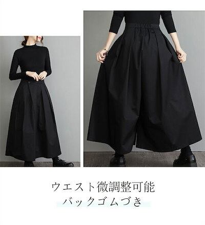 ワイドパンツ 黒 レディース ボトムス パンツ フレアパンツ ウエストボタンデザイン ゆったり 春秋 バックゴム ガウチョパンツ 着痩せ 体型カバー スカンツ ロングパンツ ロング丈 大きいサイズ キ