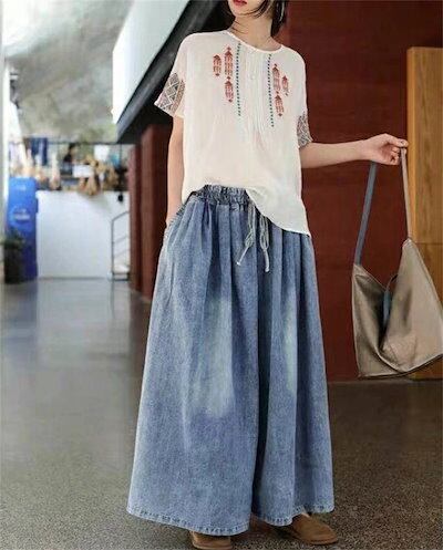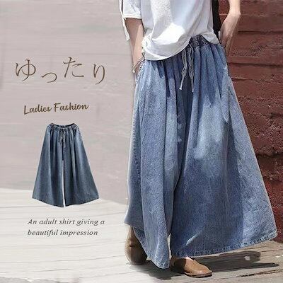 デニムパンツ レディース 大きいサイズ 春秋 ワイドパンツ デニム パンツ ロング 美シルエット ウェストゴム オーバーサイズ ファション ロングパンツ 長ズボン カジュアル 大きいサイズ ボトムス