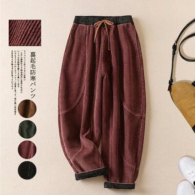 パンツ 裏起毛 ワイドパンツ コーデュロイ 裏起毛パンツ レディース 秋冬 大きいサイズ コーデュロイパンツ ワイド ボトムス 体型カバー バルーンパンツ サーカスパンツ コクーン ウエストゴム ロン