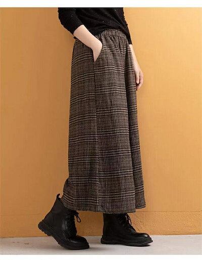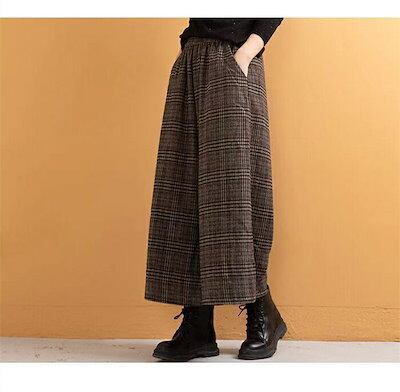 ワイドパンツ レディース パンツ 秋冬 ガウチョパンツ 冬 スカーチョ 厚手 チェック柄 秋冬 ワイド パンツ きれいめ チェックパンツ 大きいサイズ ゆったり 体型カバー 着痩せ ほっこり 暖かい
