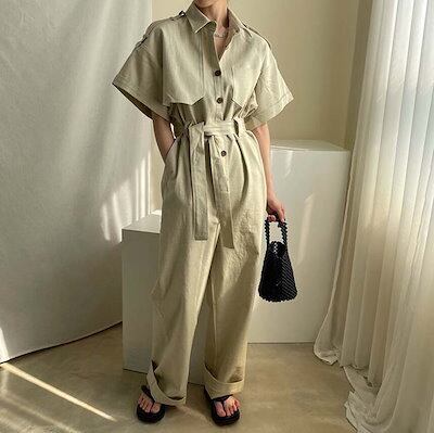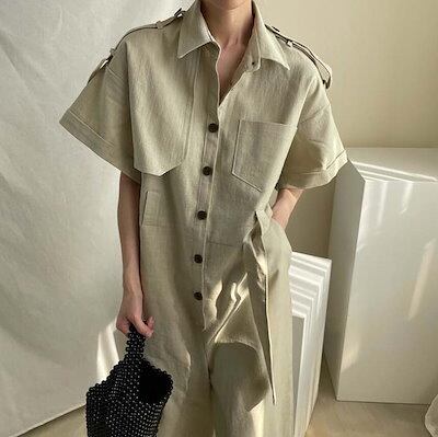 オールインワン レディース ワイドパンツ オーバーオール 春 夏 秋 半袖 ゆったり 体型カバー 女性 お呼ばれ 可愛い ワイドシルエット 大きいサイズ シンプル おしゃれ ゆったり カジュアル ナチ