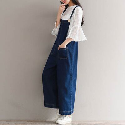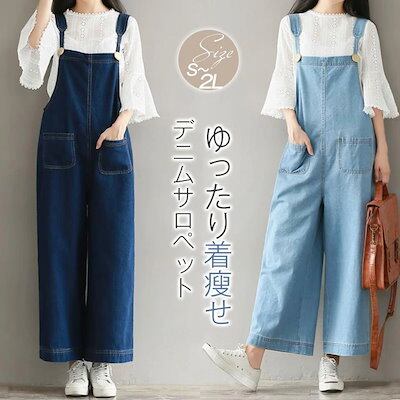 サロペット パンツ デニムオールインワン パンツ レディース ワイドパンツ 薄手 デニム サロペットパンツ 春 夏 秋 きれいめ 着痩せ 大きいサイズ カジュアル おしゃれ 体型カバー ゆったり
